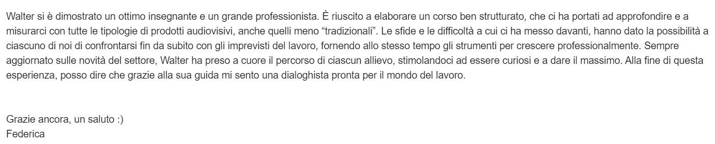 Ho imparato di più con questo corso che con decine di seminari con professori e VIP del doppiaggio